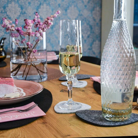 Le set contient des dessous de table et des sous-verres en 4 couleurs, formes et tailles : Pour les assiettes, les bols, les verres – toujours la base parfaite.