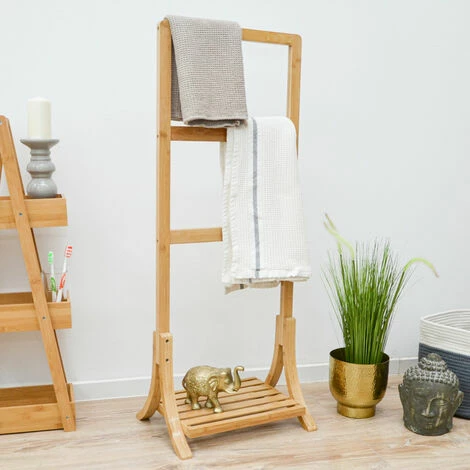 Solide en bas et étroit en haut : grâce à sa conception peu encombrante, le support est garanti pour s’adapter à côté de votre lavabo. Pour les serviettes préchauffées, vous pouvez le placer très près du chauffage.